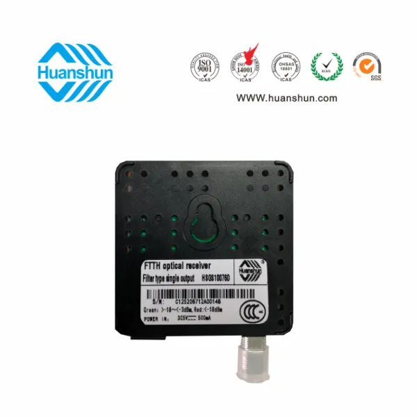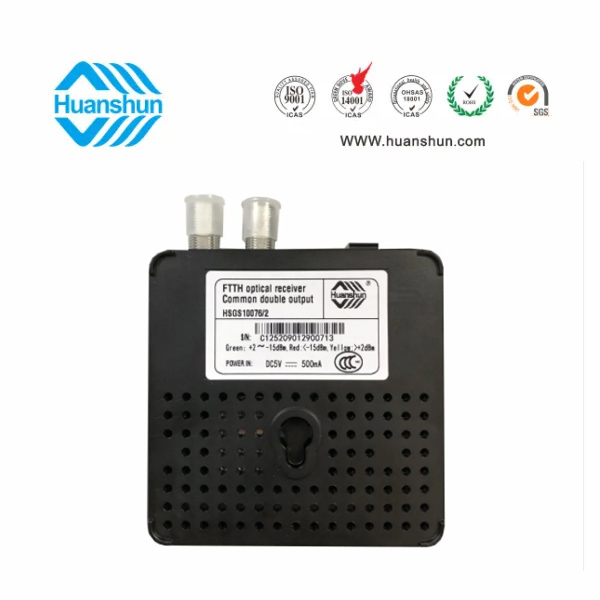 環順的HSGS10076/2光接收機是專為CATV網絡的FTTH 應用而設計的入戶型光接收機。具有結構小巧緊湊、式樣美觀、 應用方便等 特點,在高達1000Mhz的帶寬下能夠提供穩定的輸出電平和優異的性能指標,具有極寬的光功率工作范圍。