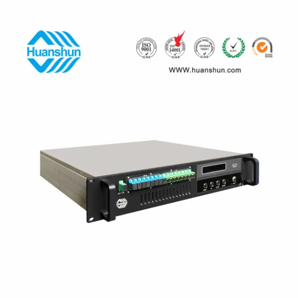 19 " 2U/3U標準機箱,-5 ~ +10 d Bm輸入,8路標稱規格(16、17、18、19、20、21、22、23dBm)放大輸出,并支持下調-2dB,安全連接模式,NF ≤ 5dB(0dBm時);內置FWDM合波器,插播損耗 ≤ 1dB;雙模塊熱插撥電源,AC90 ~ 255V或DC-48V供電,RJ45標準網管(支持SNMP、WEB)