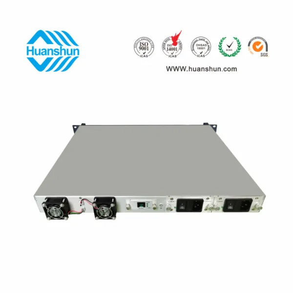 大功率光纖放大器EYDFA | YGF1508-16C | 19 " 1U標(biāo)準(zhǔn)機(jī)箱,-5 ~ +10 d Bm輸入,8路標(biāo)稱規(guī)格(16、17、18、19、20、21dBm)放大輸出,并支持下調(diào)-2dB,安全連接模式,NF ≤ 5dB(0dBm時(shí));內(nèi)置FWDM合波器,插播損耗 ≤ 1dB;雙模塊熱插撥電源,AC90 ~ 255V或DC-48V供電,RJ45標(biāo)準(zhǔn)網(wǎng)管(支持SNMP、WEB) |