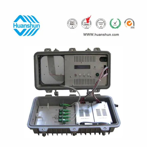 野外型 EYDFA | HSGF100Y-0818-SA | 野外型防水結(jié)構(gòu),-5 ~ +10 d Bm輸入,8路標(biāo)稱規(guī)格(18、19、20、21、22dBm)放大輸出,并支持下調(diào)-2dB,安全連接模式,NF ≤ 5dB(0dBm時(shí));雙電源AC90 ~ 255V供電或AC35 ~ 75V饋電,RJ45標(biāo)準(zhǔn)網(wǎng)管(支持SNMP、WEB) |