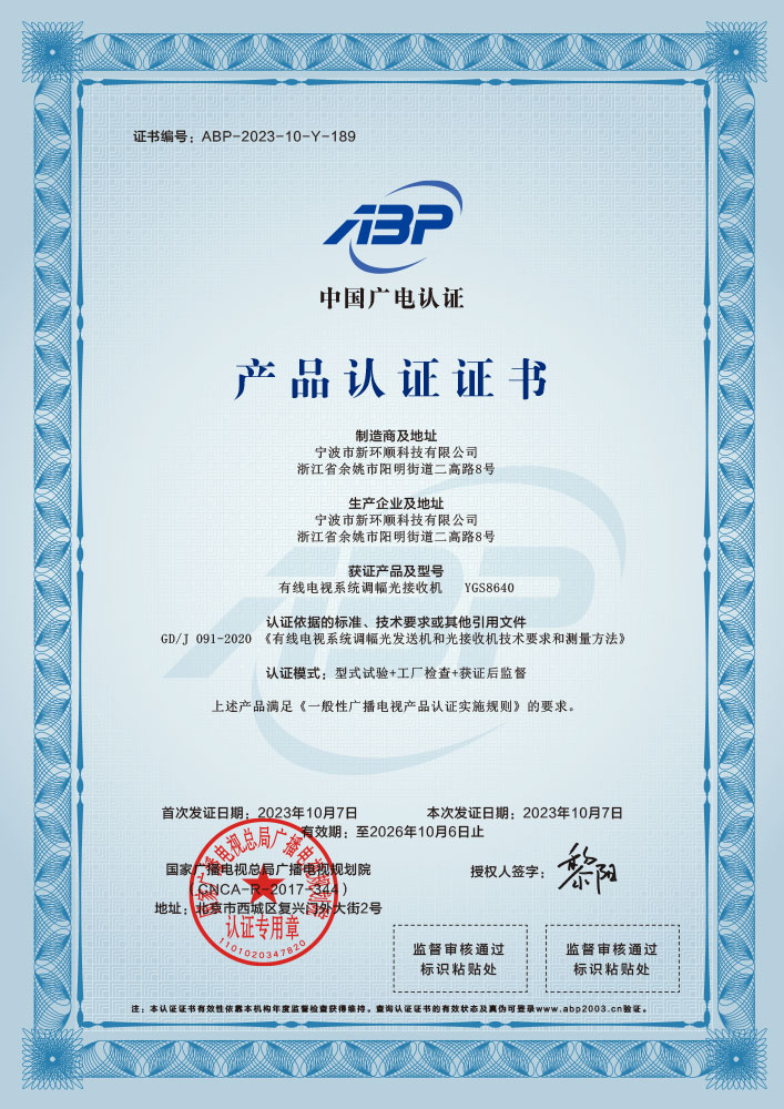 有線電視系統光放大器認證
