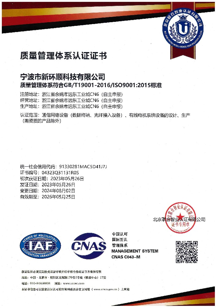ISO9001 質量管理體系證書